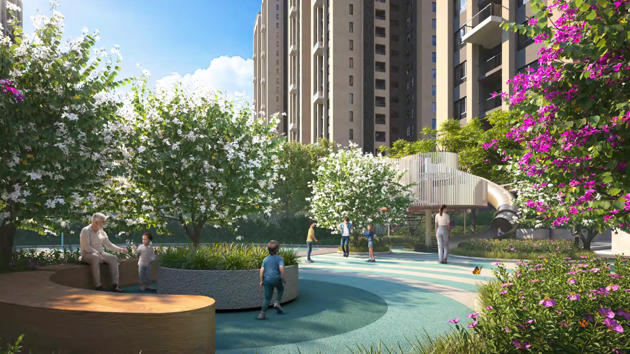 Enjoy 70+ world-class amenities at Ambuja Utpalaa, including an infinity pool, aqua gym, rooftop cabanas, gymnasium, yoga deck, coworking space, banquet halls, kids’ play zones, jogging track, gardens, theatre, sports courts & more!